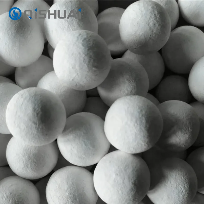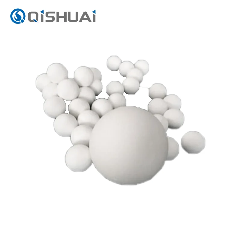 High quality alumina balls produced by Shandong Qishuai, all have very high hardness, very good chemical stability and high heat resistance (1600°C). Various specifications are available with particle size ranging from 0.5mm to 10mm. Main applications include grinding and polishing, catalyst carrier, adsorbent, high-temperature refractory material etc.