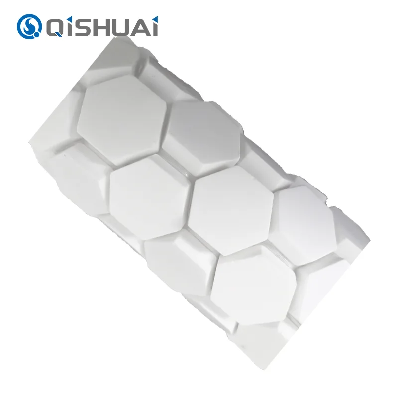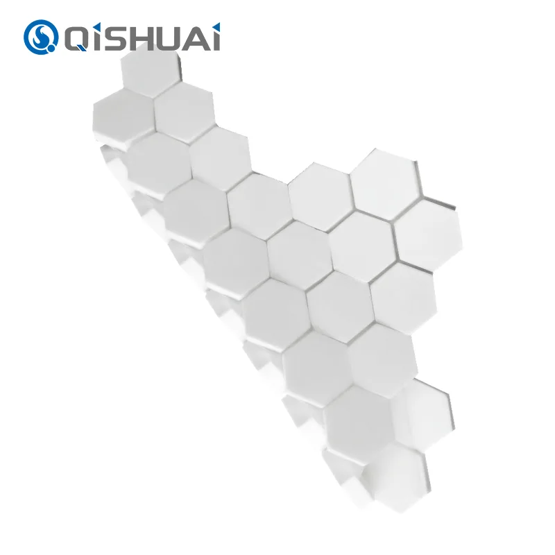 Shandong Qishuai Wear-Resistant Equipment Co., Ltd.'s high-quality Hex Alumina Ceramic Mosaic, as illustrated, feature a distinctive hexagonal design that sets them apart from common square or circular tiles. Each hexagonal alumina ceramic mosaic tile boasts smooth, flowing edges with exquisite details clearly visible.