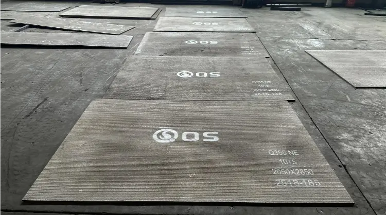 (3) Chromium Carbide Overlay Plates: Shandong Qishuai’s clad wear-resistant plates are primarily chromium carbide alloy-clad plates. Using a cladding process, one or more layers of wear-resistant alloy containing a high concentration of chromium carbide hard particles are applied to a substrate of medium- to low-carbon steel plates such as Q235. Combining the toughness of steel plates with the wear resistance of the alloy, these plates can be directly cut and welded, making them suitable for a wide range of complex installation scenarios.